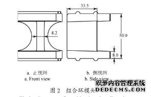 該型環模各組合單元包括環模模頭合模具基體,組合環模頭為主要工作部件,其設計要求高于模具基體。為便于喂料,模具模孔的結構形式為內方外圓,結構如圖2所示。